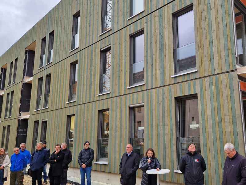 Am Montag den 06.10.2025 durften wir wieder bei einem tollen Richtfest dabei sein. Am Eisbuckel in Regensburg entstehen 25 neue Wohnung, mindestens 20 hiervon gefördert im sozialen Wohnungsbau. Die Umsetzung dieses Bauprojektes ist ein hervorragendes Beispiel für gelungene urbane Nachverdichtung.